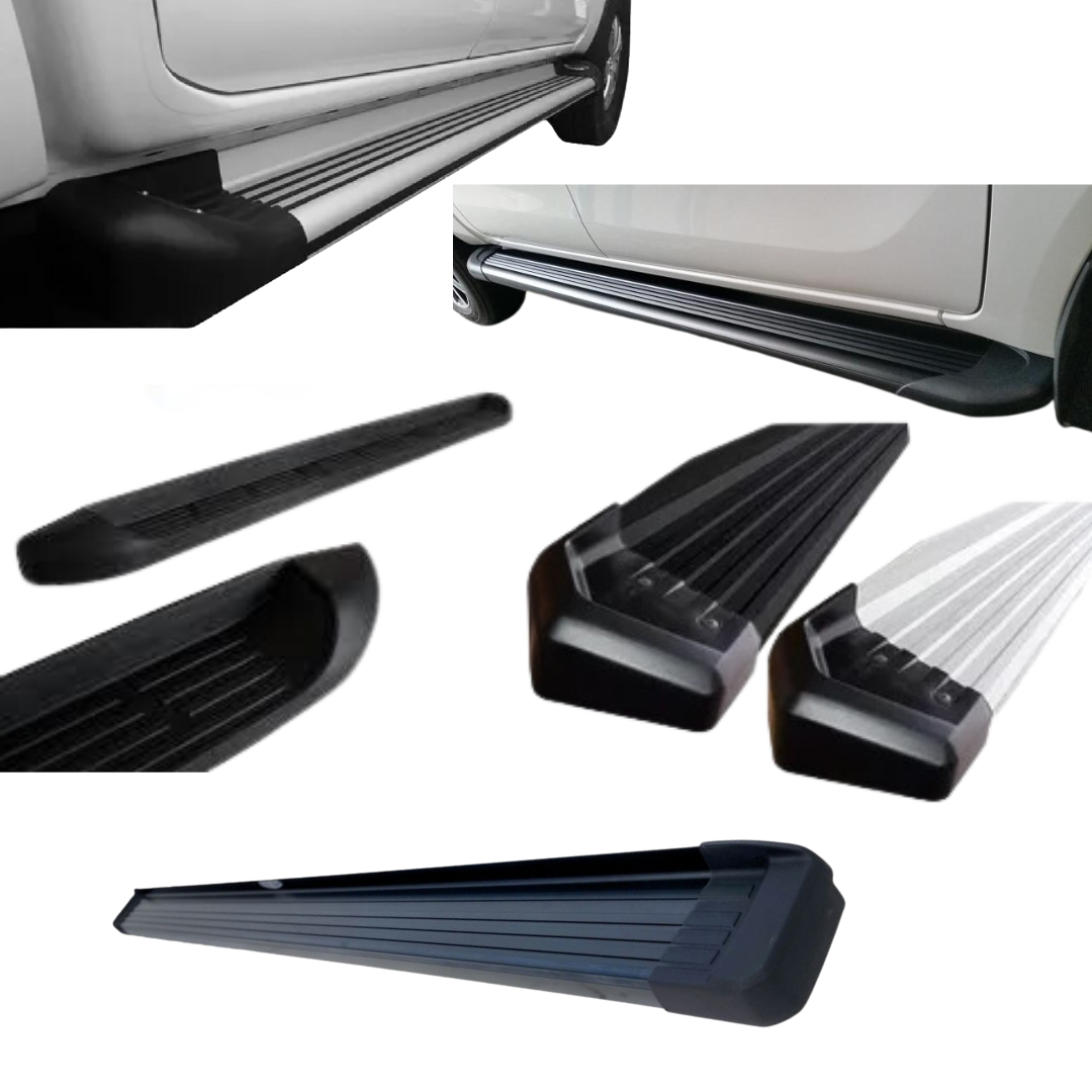 Los estribos, además de facilitar el acceso al vehículo también permiten proteger los laterales de la camioneta frente a posibles impactos de piedras, o contra salpicaduras de barro o tierra.